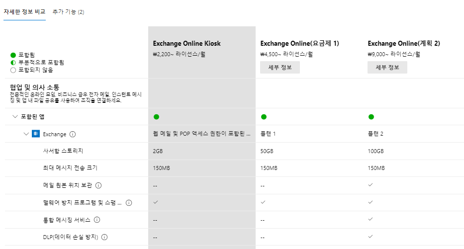 MS Teams 는 기본으로 사용이 가능한데, 메일서비스 이용하려면 Exchange Online 서비스를 켜줘야 함.